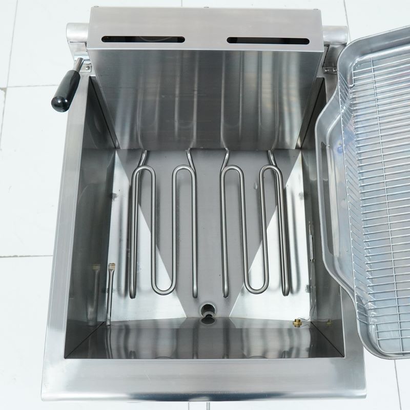 Bếp chiên điện 35 lít TB-L18 được trang bị dàn thanh nhiệt chữ U công suất lớn, giúp gia nhiệt nhanh và tỏa nhiệt đều khắp khoang chiên, đảm bảo thực phẩm chín đều, vàng giòn từ trong ra ngoài. Phía trên thanh nhiệt còn có tấm chắn đáy bảo vệ, ngăn vụn thực phẩm bám vào thanh nhiệt, giảm nguy cơ cháy khét trong quá trình chiên.