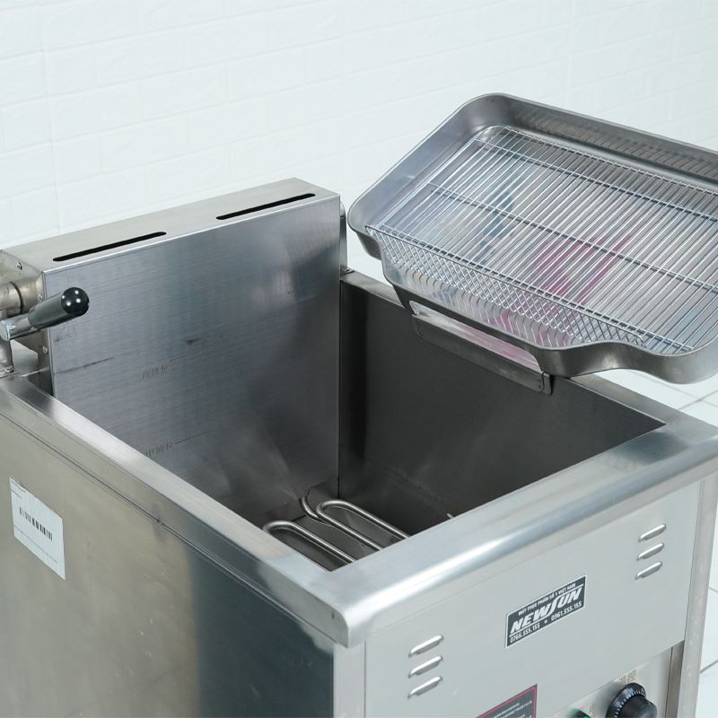 Điểm nổi bật là thanh nhiệt có thể nâng hoàn toàn lên, giúp vệ sinh khoang chiên dễ dàng và nhanh chóng, vượt trội hơn hẳn so với các bếp chiên dùng thanh nhiệt cố định.